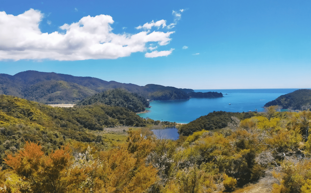 Once across, the track weaves through forest and beaches like Waiharakeke and Goat Bay, then climbs to a lookout above Skinner Point before dropping into Tōtaranui. The big campground there felt busy after the quieter bays, but it’s also where the water taxis run from. We hopped on ours back to Kaiteriteri and enjoyed seeing the whole coastline from the water.