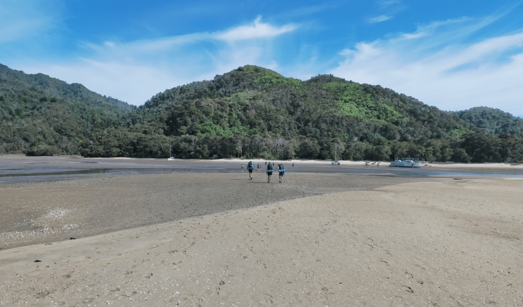 The big feature today is the Awaroa Inlet crossing. It can only be done around low tide, usually knee-deep and a bit chilly. It takes about 25 minutes to get across, and there’s no alternative track, so timing is everything.