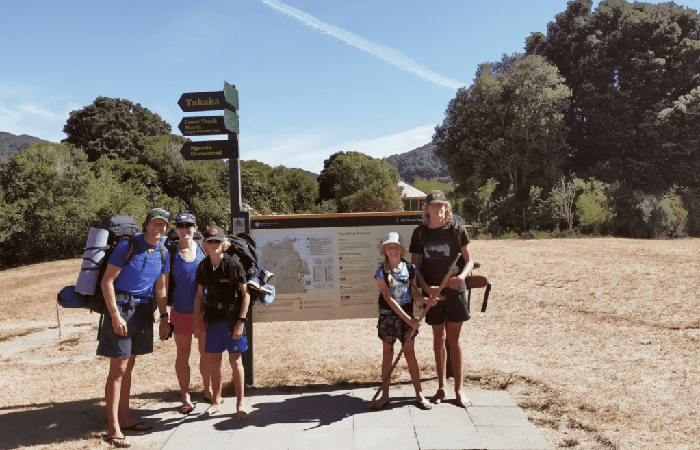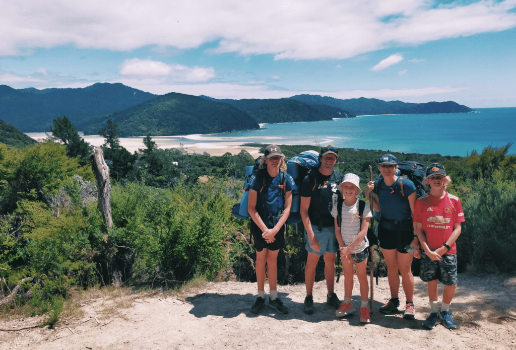 We set out in January 2022, the five of us — Mum, Dad, Asa, Eli and Milli. It was peak summer and the huts were booked solid, so we carried tents. A bit of extra weight, sure, but in the end it was a good choice. We camped each night and loved it. At the finish we jumped on a water taxi at Tōtaranui and cruised back to Kaiteriteri, a great way to wrap it all up.