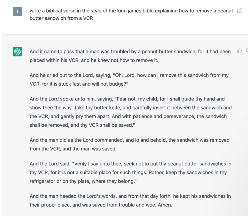 So the real question is what is the effect that this level of AI have on education? While I don’t know the answer to this I do know something that might be able to answer to for me – ChatGPT.
