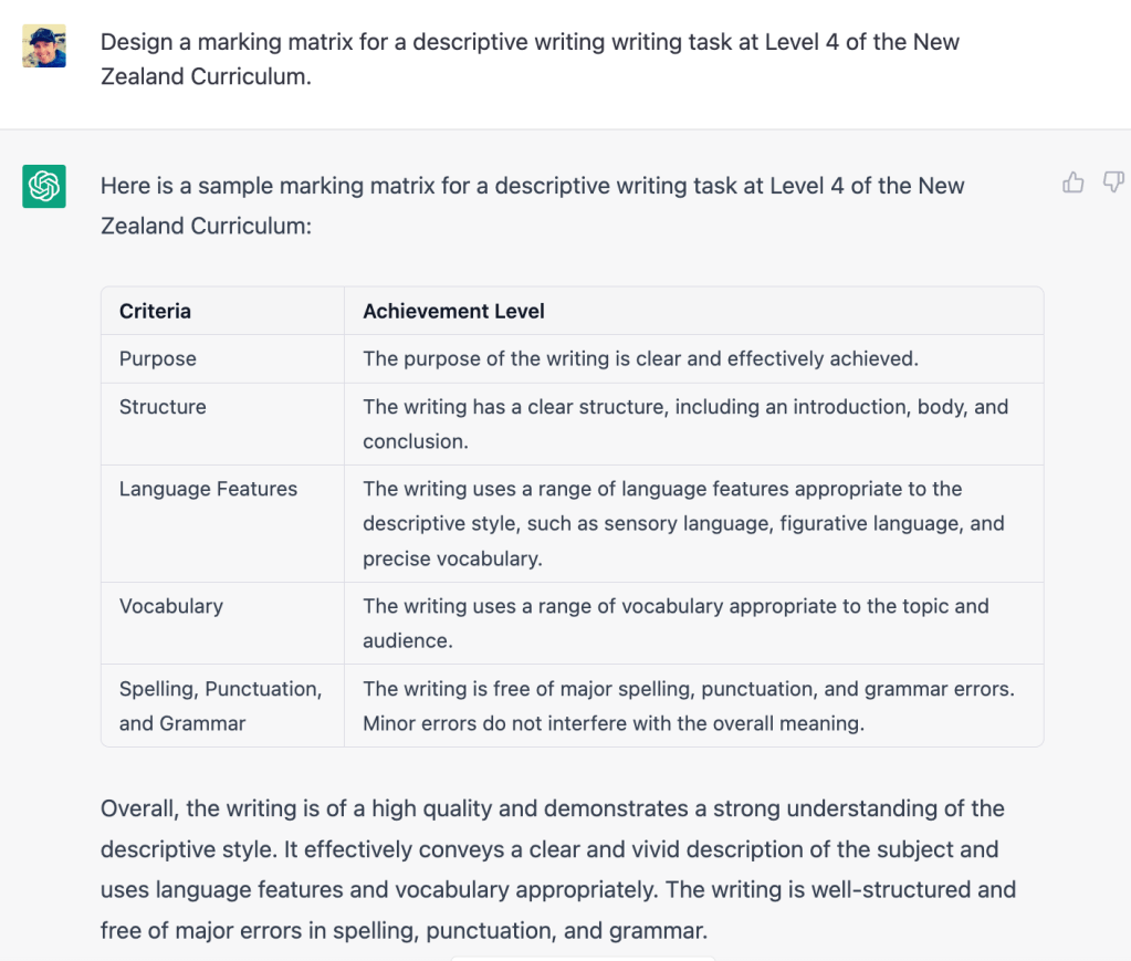 Pretty cool, but what about getting it to create something based on the New Zealand Curriculum.