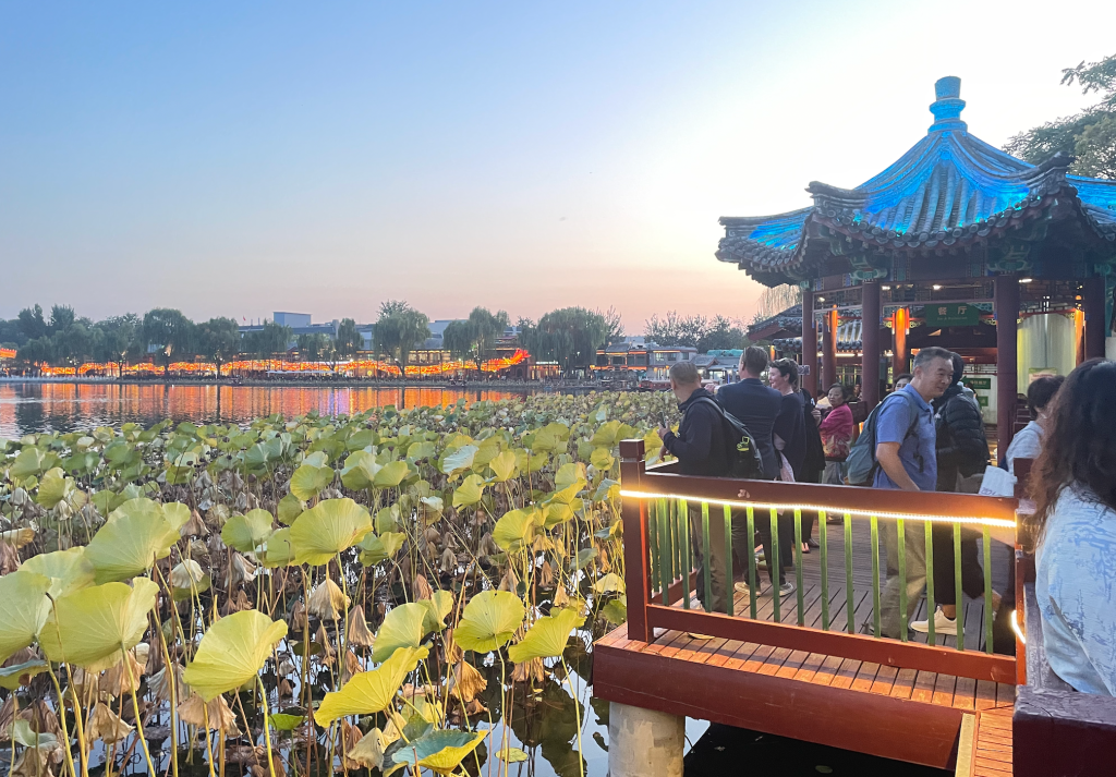 Our official itinerary, with all the other gelegates, began the next day with a visit to the Forbidden City, an incredible historical site that also includes an education center. The place radiates Chinese history, with every corner revealing something new. The City, located in the heart of Beijing, is a vast imperial palace complex that served as the residence of Chinese emperors for nearly 500 years. With its intricate architecture, expansive courtyards, and richly decorated halls, it remains one of China’s most iconic symbols of royal heritage. It was impressive to see how history and education intermingle in such an iconic landmark. Afterward, we went to Houhai Lake for dinner. Houhai Lake, is one of the three connected lakes in central Beijing, is a scenic spot surrounded by historic hutongs, willow-lined shores, and lively cafés and bars. Known for its calm waters and vibrant atmosphere, Houhai actually freezes in winter, giving the setting a magical touch.