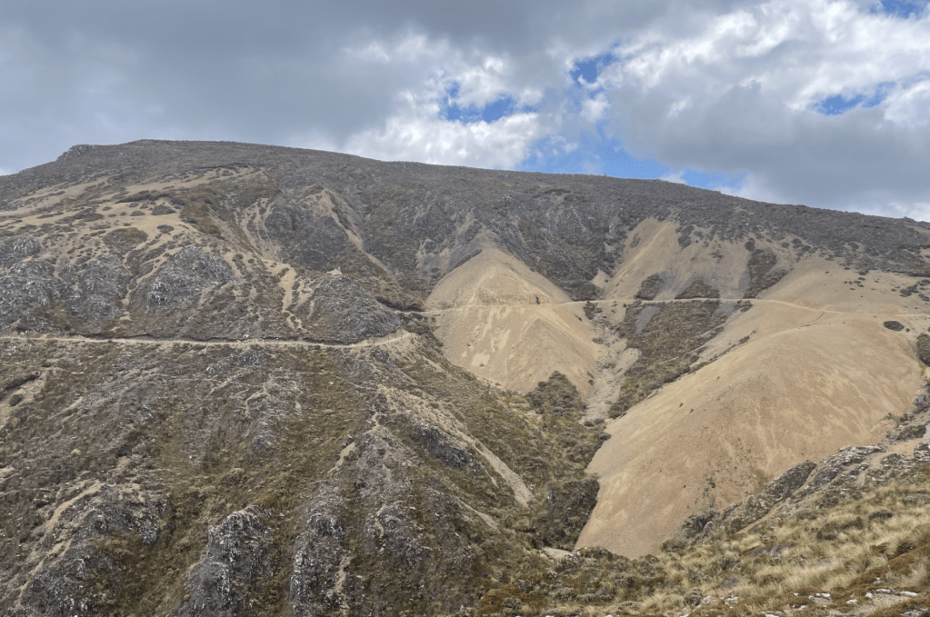 Midway through the ride, we navigated a boggy section on a lower flat and reached the halfway point marked by a toilet and a magnificent viewpoint. A brief climb led us to one of the most thrilling parts of the trail—a rocky traverse featuring steep scree slopes and winding tracks that seemed to dance with the mountain’s contours.